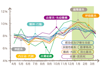 病気による月別死亡の割合(出展:総務省 統計データ)