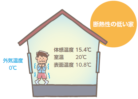 断熱性が高い家と低い家では、同じ室温でも体感温度が違います。
